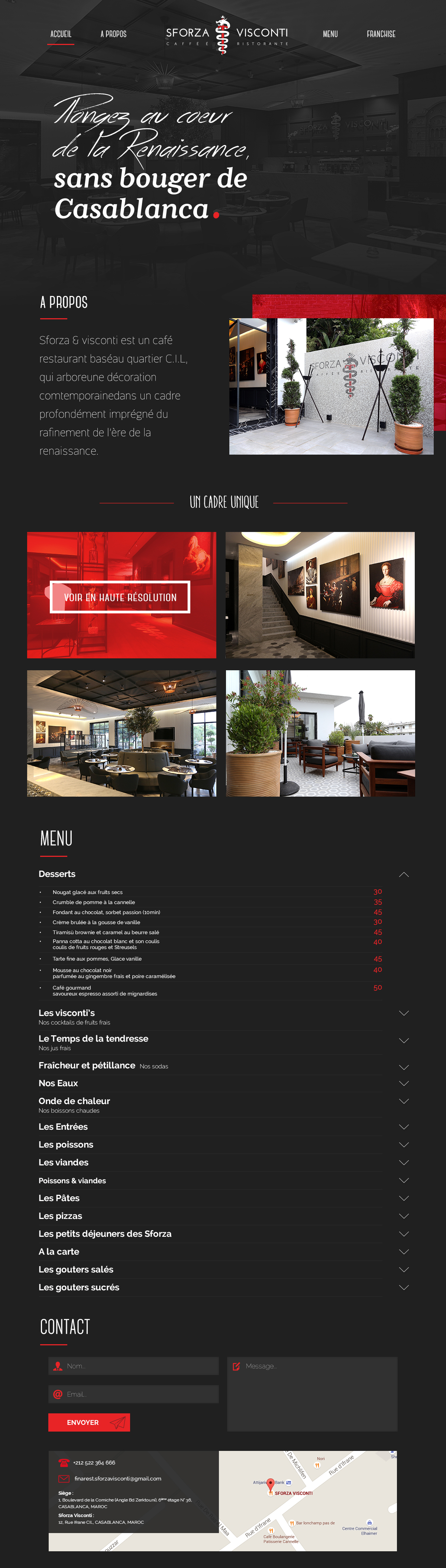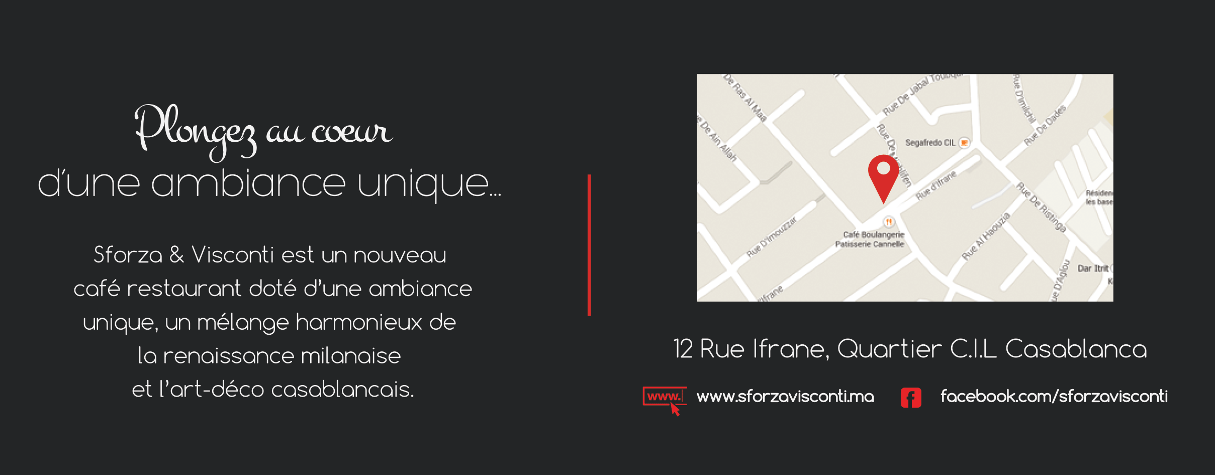 Sforza & Visconti ets un café restaurant situé au quartier C.I.L, qui arbore une décoration contemporaine dans un cadre profondément imprégné du raffinement de l'ère de la renaissance.